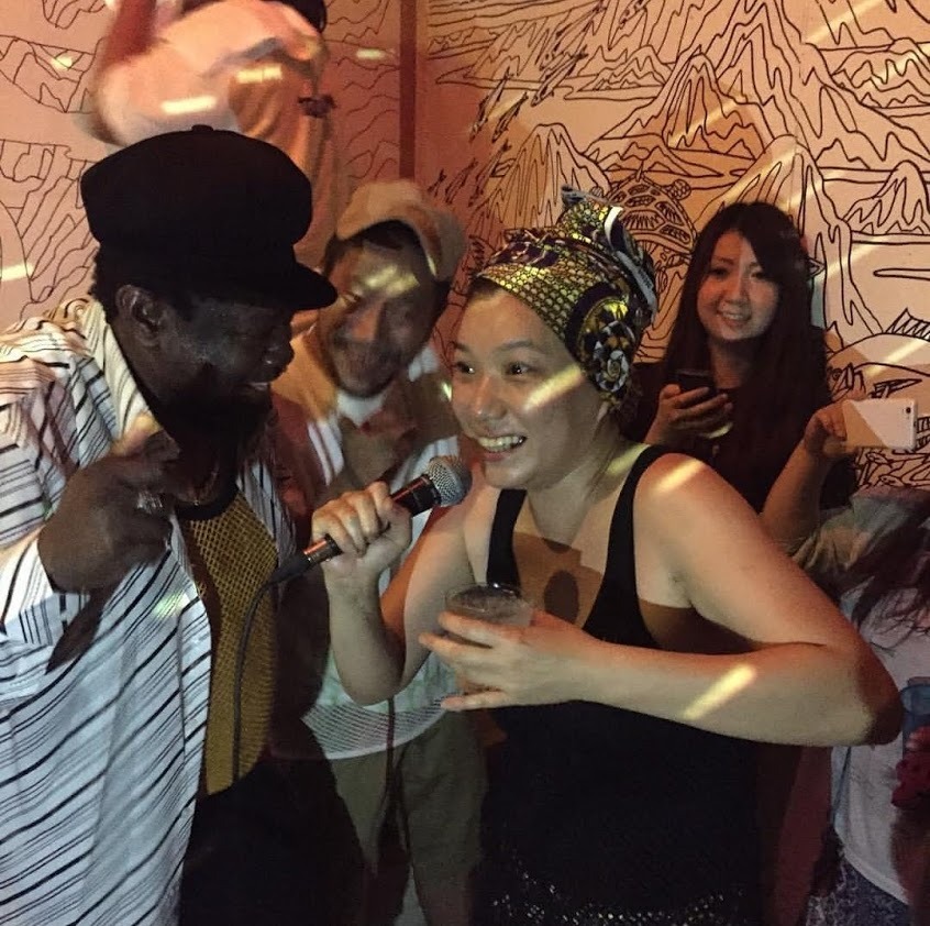 ▲JERK✡MANでライブ中のRankin JoeからマイクをパスされるMama Cook。Pow Pow!