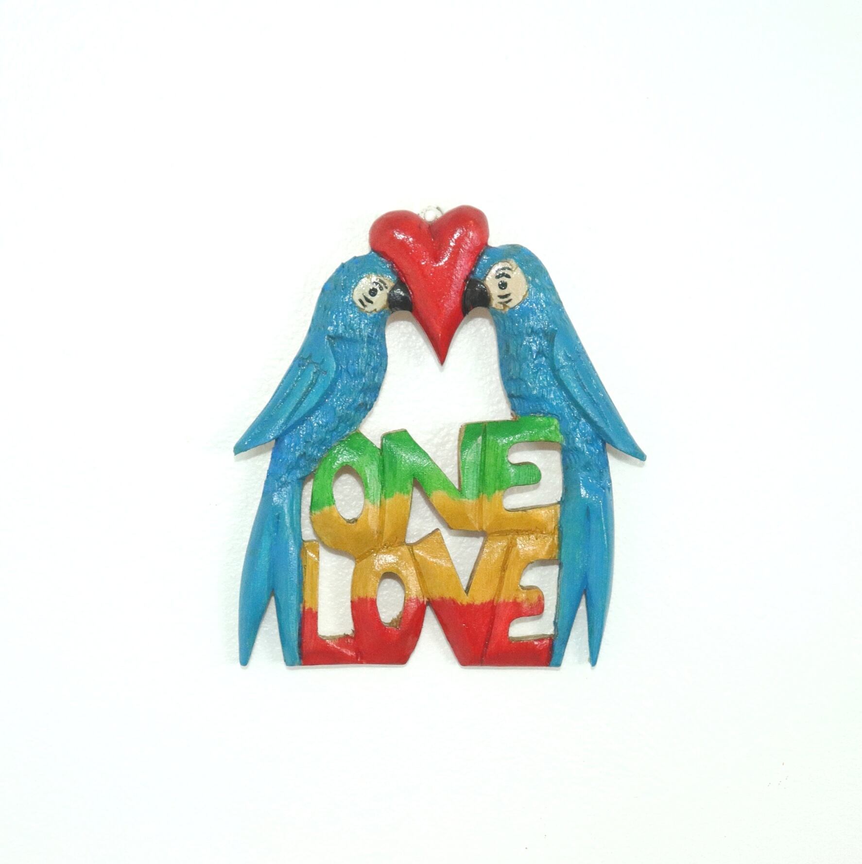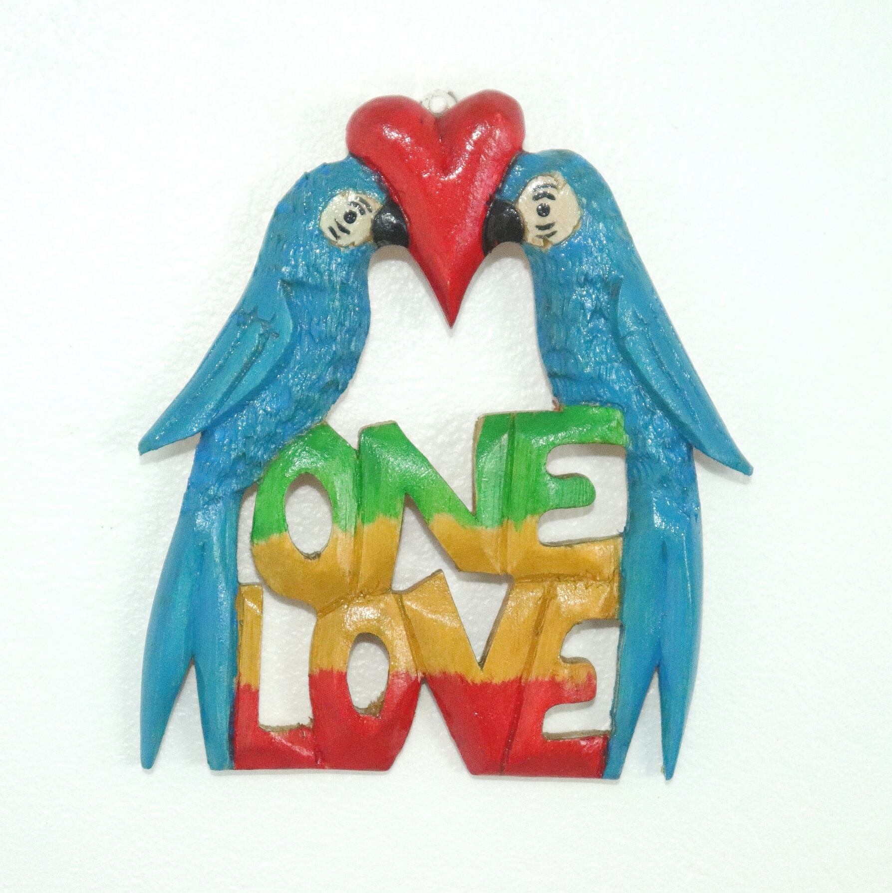 【ジャマイカ職人手彫り】Parrots ONE LOVE 水色